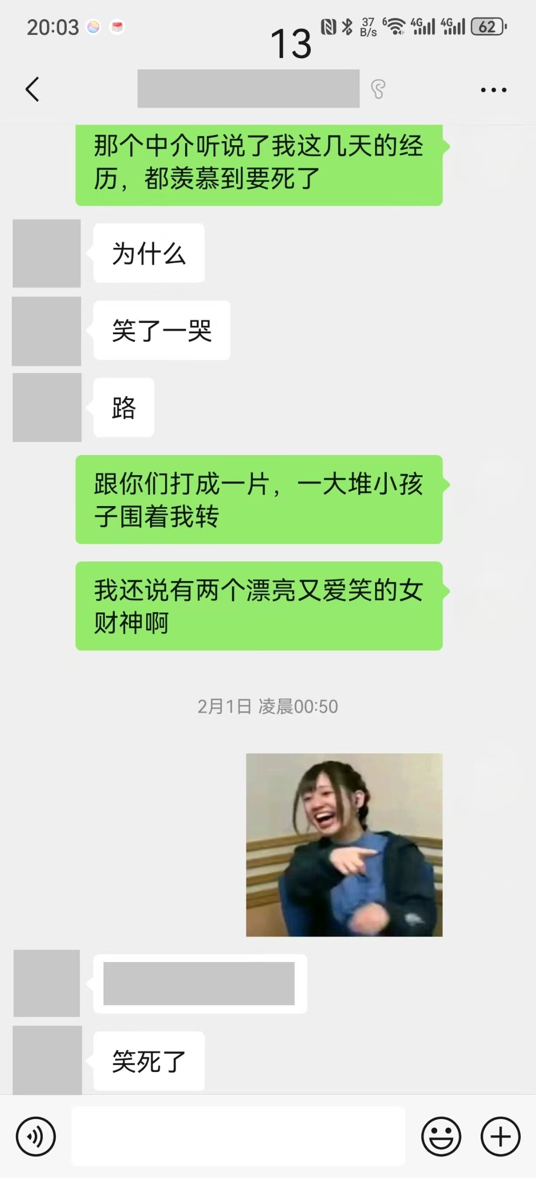 之前发表后有比较多朋友问我何为开启精神集美的另外一面,这些聊天记录就生动列出来的。精神集美就算你用钱去砸是可以的,但是有一部分人就算用钱砸就砸不到这种欢快的聊天效果。就全都是发自内心的,你用钱砸是可以,只是你单方面开心咯,没任何冲突的,比起专业的那种,非专业的就顶多聊到这样了,已经不能下去了,毕竟聊得再好,出来内核还是你不断的砸钱。所以我还是喜欢圈外的精神集美,毕竟砸的钱不多而且有可能反向砸钱。圈外做得到的有些非常纯粹的价值圈内无论如何都做不到。我都是说的是感觉方面,能领悟就领悟。不能的也只能慢慢教导一下。总之一句,如果你不能开启精神集美另外一面属性,那跟喝白开水没区别,吃之无味弃之可惜。倒不如去找sn或者sf还能比较懂得你,提供情绪价值自己舒服。但能开启的,给到的你的情绪价值,就不是SF和SN能给予的。大家去找精神集美只不过是感觉自己找了之后好像自己瞬间年轻几岁咯哈哈哈