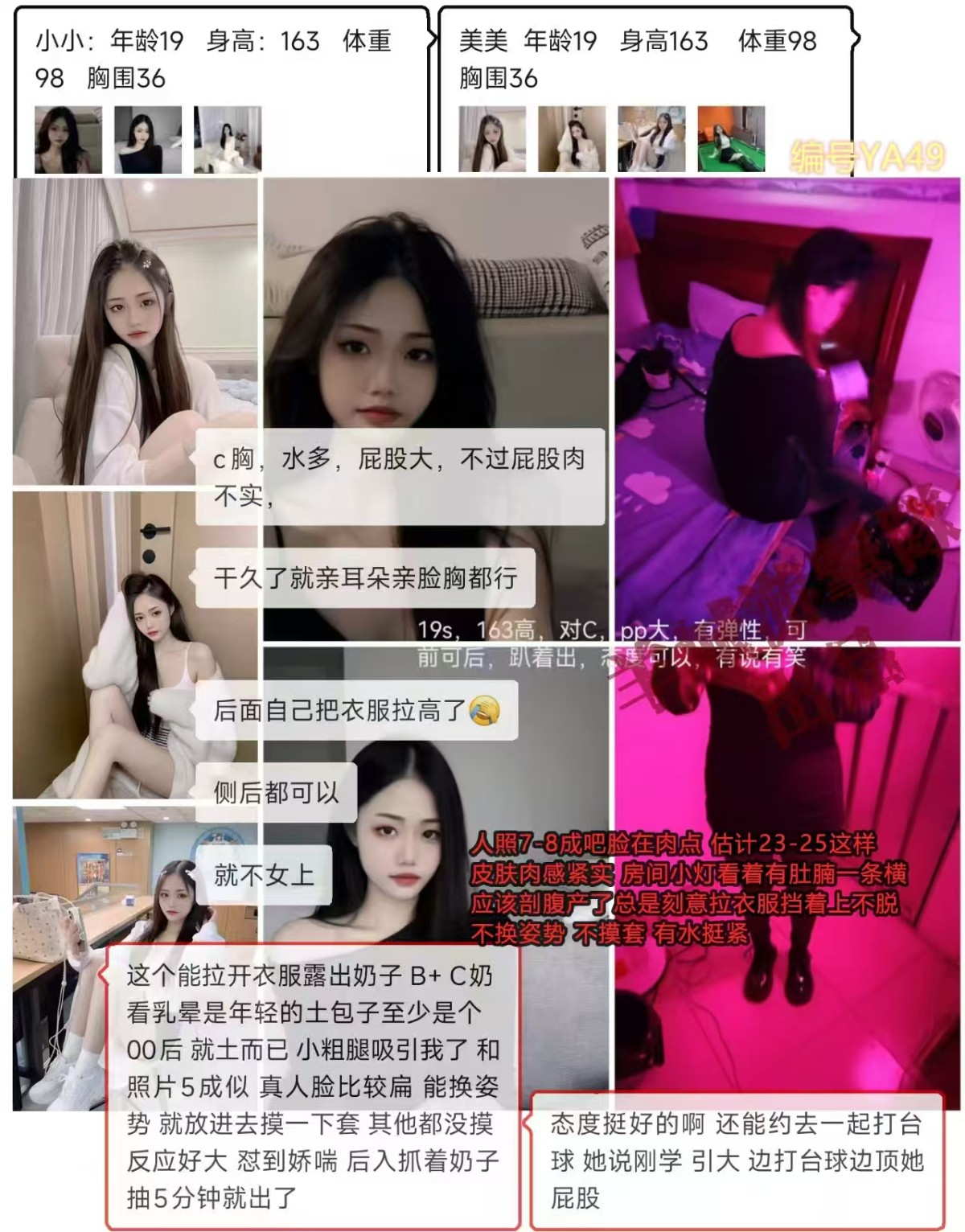 昨天又是上次负责私约的老哥在太和那边约到这个,于是找了我们熟悉的司机载着我这个打杂的和负责私约的老哥去,去之前我也觉得好像比较G,要整整5啊,我还不如多找几个。那当时又早,才晚上9点多,暂时没有其他新的地方可去。于是想着不看白不看去咯。驱车遇到目的地,找到G寓。开门后他们也看了(我没看)司机看中了就去了。我们在楼下等。出来后听大佬描述就态度和配合还可以,对版的。叫我上去看看再说,唉,经不住就上去看看咯。我记得上去开门之后看到还感觉满意,就进去房间。看到她穿着一件绒大衣里面就看到一件白衬衫一条短裤,相反我自己都穿两件厚厚的打底衣服外加两条裤子。就开口说一下你不冷吗,她来了一句不太冷。我当时记得这三个字好像说得速度有点快,心中瞬间品味一下好像感觉对方心情还不错。我就说外面好冷啊,你看我,已经冷到有点哆嗦(于是就真的哆嗦一下)。她就说这么冷吗,我就说啊不然呢,你以为哥哥装的啊。于是在这开场白中就开始了。因为只是高价快速的,并没有太多的其他类型的体验可言(反正我个人对一些杂七杂八的东西一丁点都不感兴趣,感觉浪费时间,宁愿在户外多走走长见识还好)。通过开场白聊天后,我的直觉还是准的,妹子心情还行。就一小步一小步的继续聊,结果集美就一大步一大步的和我聊天。就是我一句话她三四句话那种。其中我也顺手送了个礼物(一个锁匙扣),她就问我咋知道她最喜欢这个东东的(因为之前我做过调查,发现这些集美好像有点大概率喜欢这个二次元东西,便随身带一下,比起去给吃的拉近关系,这种如果中了,可能效果出乎意料)。我就说我搭通天地线知道的你信吗。我当时想她可能沉浸在欢乐之中没怎么去留意了。所以除了机械运动,还开启了一些特别的东西(我不喜欢FW,所以别往FW类方面想)帮她吹耳朵,蛇那个。后来还给我看一些东西,包括某视频app,当时我猜她应该也有多动症。就口头行动起来,先引导手部,最后再到全身。就没有任何东西在身上,然后活蹦乱跳那种。最后好像差不多1小时我才出来。最后想说,也并不是每个我都能这样的,失败也很多,中奖概率就50吧可能少一点点。就双方过程这么愉快,反正我描述的是一种感觉,懂得都懂。下来后问了司机一些东西,好像只有一些东西我才出现哈哈哈。(因为我上去玩的时候手机刚好忘记充电,手机好像只有10多电没拍)